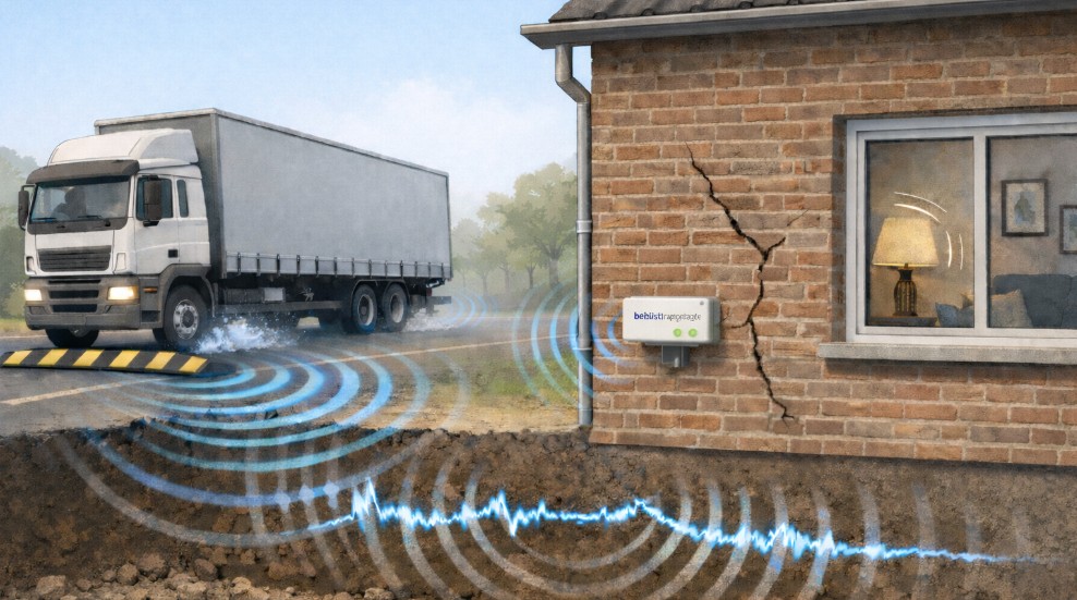 De keuze voor een trillingsmeting buiten kan diverse redenen hebben. U woont bijvoorbeeld aan een dorpsweg met een verdiepte putdeksel of hobbels. Of de verkeersdrempel veroorzaakt zware trillingen en scheuren in de muur. Het slaan van heipalen of damwanden zorgt voor veel overlast waarbij zware trillingen vrijkomen. U wilt naast de vooropname een trillingsmeting laten uitvoeren.